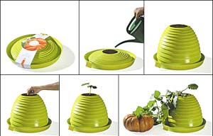 這個(gè)可降解的伸縮花瓶在拉伸開(kāi)來(lái)并埋上種子澆水開(kāi)始使用之后,可以保持正常狀態(tài)9個(gè)月時(shí)間,之后就可以?huà)仐壍?a target=_blank href='/Tag/C0ACBBF8CFE4/' target=_blank >垃圾箱里,在大自然中完全降解。   在這9個(gè)月的時(shí)間,花瓶還可以根據植物的生長(cháng)狀態(tài)而改變形狀。在秋末冬初,天氣變冷植物枯死的時(shí)候,花盆也到了使用期限,可以跟植物一起腐化分解在自然中。