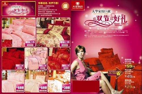 大華家紡在中秋節國慶節來(lái)臨之際,推出"慶雙節 送好禮"大型促銷(xiāo)活動(dòng)。大華家紡雙節送禮,超值回饋。