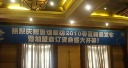 喜氣洋洋,熱鬧非凡,華麗的燈光、典雅的裝飾將惠誼家紡2010新品映襯得格外耀眼。受邀前來(lái)的全國近200位加盟商朋友們在這里共同見(jiàn)證:惠誼家紡“煥然耀市”大型春夏新品發(fā)布會(huì )暨加盟商訂貨會(huì )取得圓滿(mǎn)成功。共同品鑒了惠誼家紡2010年新品發(fā)布會(huì )帶來(lái)的驚喜、興奮與震撼。